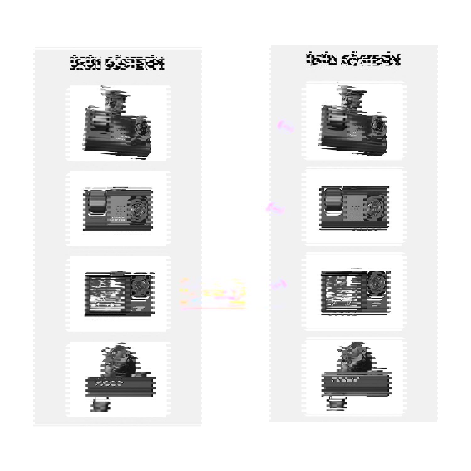 Bu 3 kameralı araç kamerası, sürüş sırasında 170 derecelik görüş açısı sağlayarak size ve ailenize tam koruma sağlar.